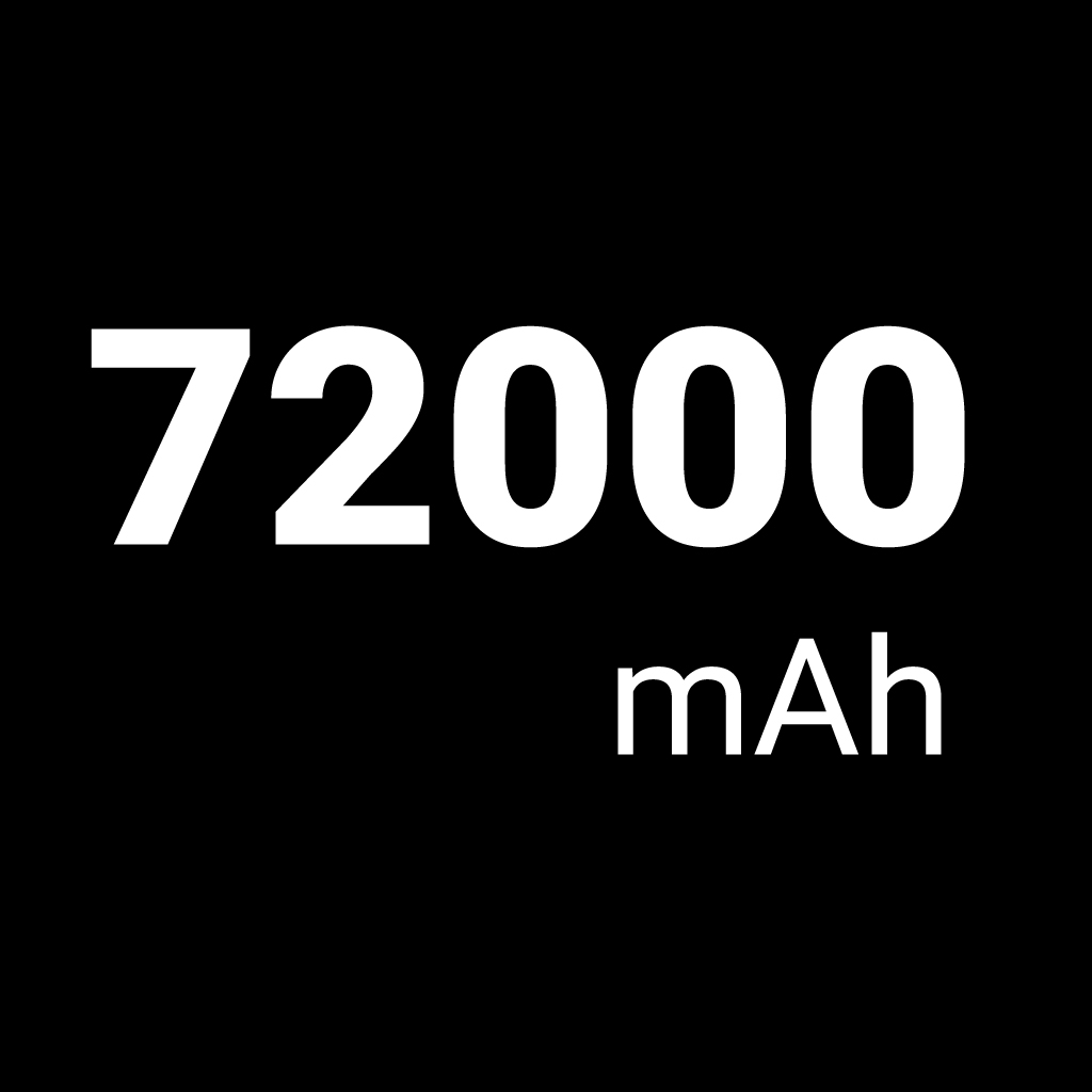 • Battery capacity: 72000 mAh (266.4 Wh)