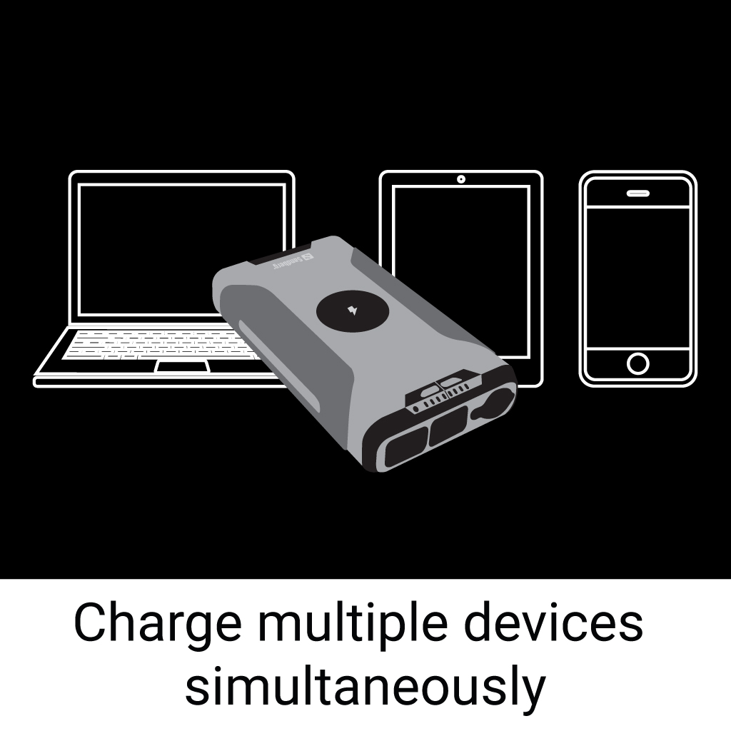 »Huge power, charges multiple devices, can be charged with both traditional power and via solar cells, smooth wireless charging, solid and durable construction, included adapters that fit most laptops or other external devices, 12V car socket for more demanding devices, good little bag for belt attachment. Unbelievably impressive. Without a doubt, this Powerbank is the most versatile, portable, extra power solution we've ever tested in terms of uses and power.«